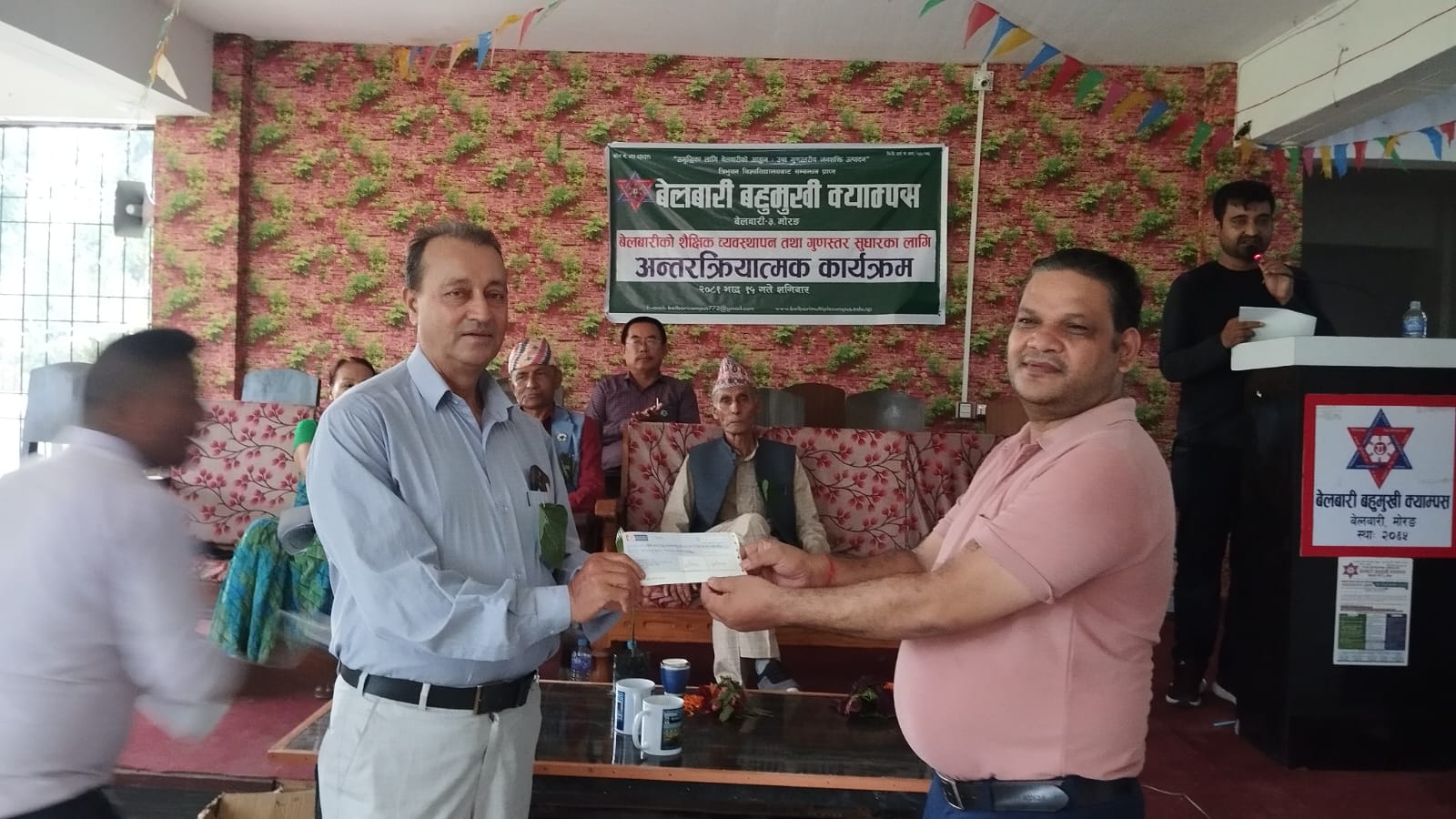 बेलबारी । बेलबारी बहुमुखी क्याम्पसको विपन्न वर्ग शैक्षिक उत्थान छात्रवृत्ति अक्षय कोषमा मोरङको बेलबारीबाट..