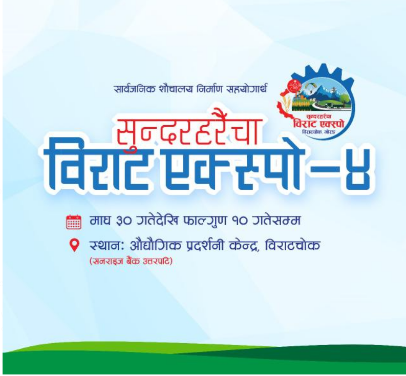 सुन्दरहरैँचा । सुन्दरहरैँचा विराट एक्स्पोको चौथो संस्करण माघ ३० गते देखि फागुन १० गतेसम्म हुने भएको छ । मोरङको..