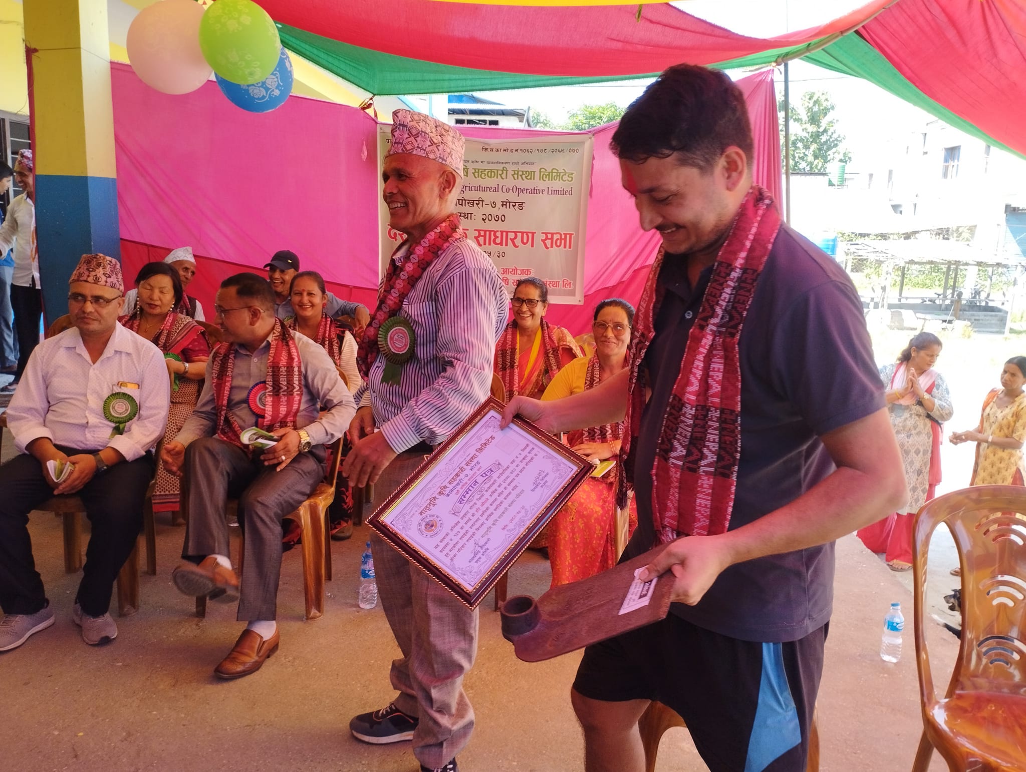 यस अघि शनिवार नै संस्थाको १० आंैं वार्षिक साधारणसभाका अवसरमा सर्वाधिक दूध बिक्री गर्ने किसान विनेश कट्वाल,जेष्ठ सदस्य देवीभक्त भट्टराई,उत्कृष्ठ किसान हरिप्रसाद न्यौपानेलाई सम्मान गरिएको थियो । यस्तै सोही अवसरमा नियमित बचत तर्फ उत्कृष्ट कारोवार गर्ने देउमाया लिम्बू,उत्कृष्ट ऋण कारोवार गर्ने देवीप्रसाद ढकाल,सर्वाधिक शेयर जम्मा गर्ने सीता घतानी,उत्कृष्ट ऐच्छिक बचत कारोवार गर्ने हरिप्रसाद लिम्बू र बाल बचत कारोवार गर्ने निश्चल गौतमलाई पुरस्कार तथा सम्मान गरियो ।